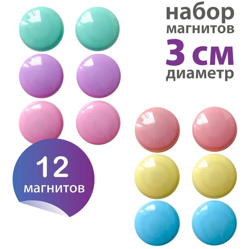 Ферритовые Магниты для холодильника доски флипчарта 12 шт 30 мм пастельные цвета