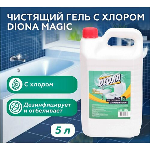 Гель для чистки ванны и туалета с хлором 5 л, Diona Magic