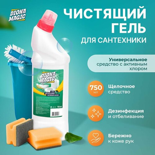 Гель для чистки ванны и туалета с хлором, Diona Magic 750мл, утенок
