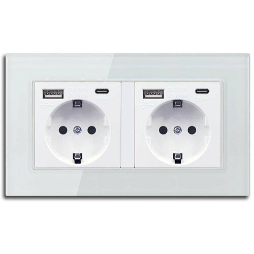 Электрическая розетка двойная DiXiS 2 Gang Socket с портами 2 USB / 2 Type-C EU (86x146) - Белая (TKEUC-2)
