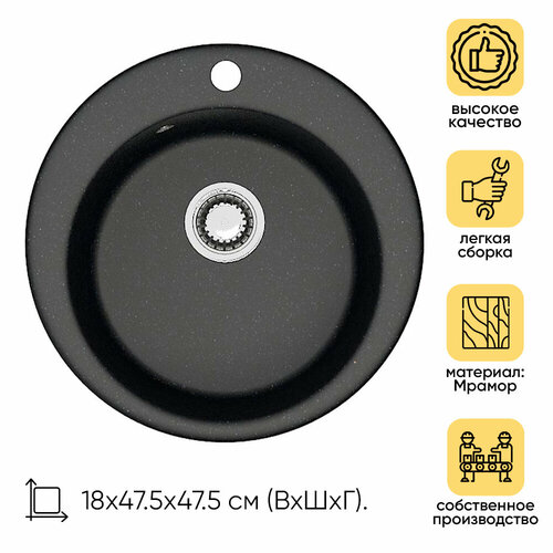 ZEIN Мойка для кухни из камня ZEIN 30/Q8, d=475 мм, круглая, перелив, цвет темно-серый