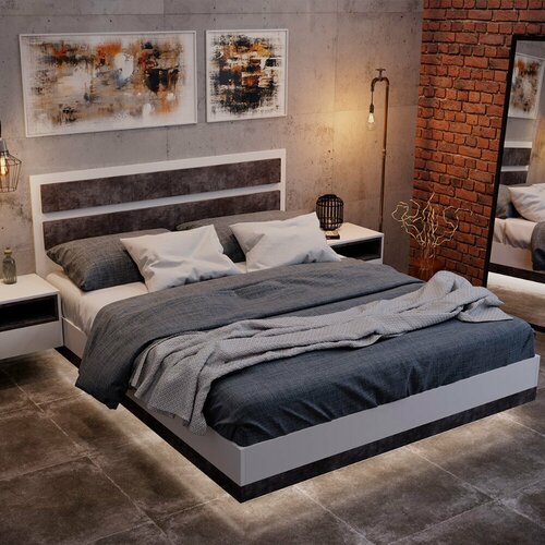 Кровать двуспальная Лотос парящая 160х200 см, Белый (тиснение)/Бетон серый