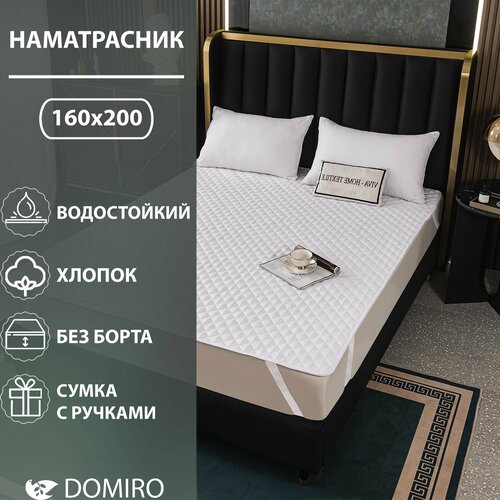 Наматрасник Domiro водонепроницаемый сатин 50% хлопок, без борта, 160х200x30