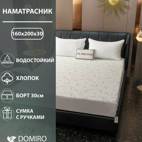 Наматрасник Domiro бамбуковый, водонепроницаемый 50% хлопок, с бортом, 160х200x30