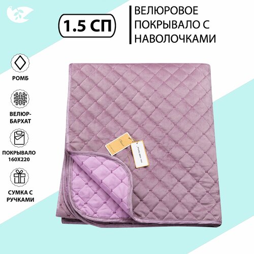 Покрывало Domiro велюровое однотонное с наполнителем Плед для кровати 160х220 см с наволочкой 50x70