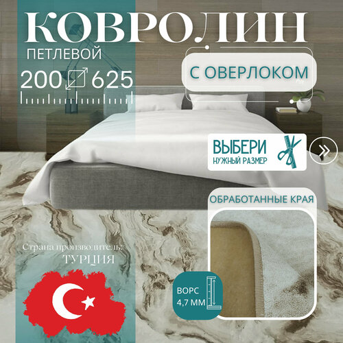 Ковролин метражом 2х6,25 м, гладкий "Песочный", бежевый с оверлоком