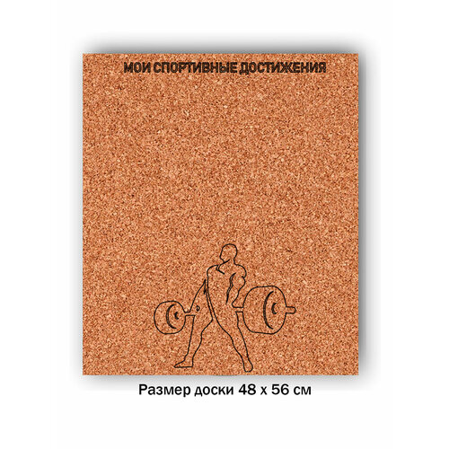 Пробковая доска без рамки на стену ' Спорт достижения ' 56х48х2 см. (Атлет со штангой Победа Приз Медаль Кубок)