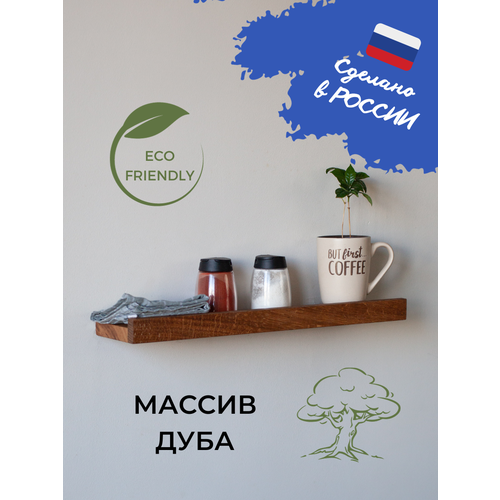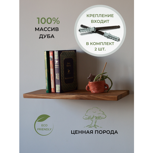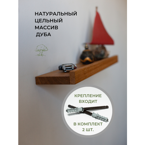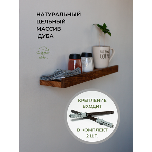 Настенная навесная деревянная полка с бортиком из массива Дуба 50х12х3,5см с креплением для комнат дома дачи квартиры гардеробной кабинета