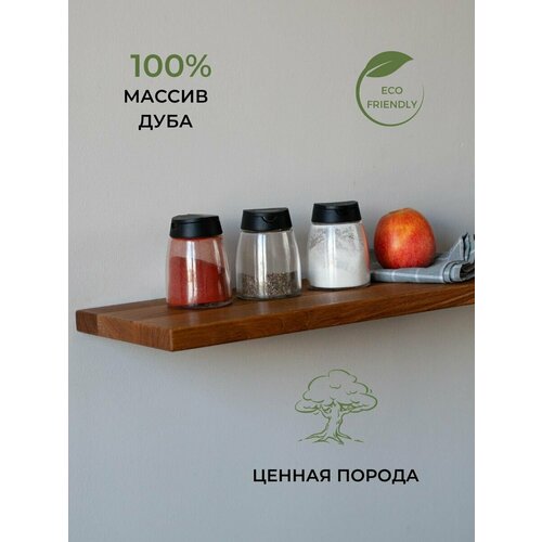 Настенная навесная деревянная прямая полка с бортиком из массива Дуба 50х12х3,5см без крепления для комнат квартиры дома дачи спальни кухни