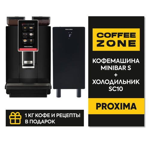 PROXIMA MiniBar S + холодильник SC10: готовая кофейная зона COFFEE ZONE Профессиональная супер автоматическая кофемашина и холодильник для молока DR.COFFEE