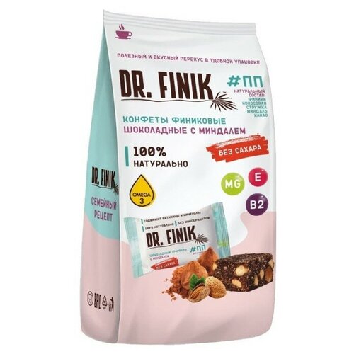 DR. FINIK Конфеты финиковые DR. FINIK шоколадный трюфель с миндалем, без сахара, 150 г