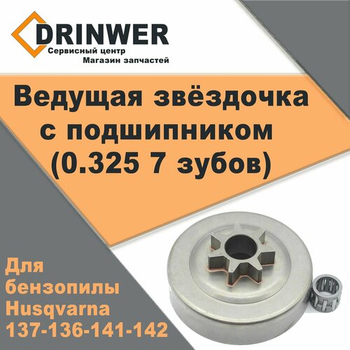 Ведущая звездочка цепи с подшипником (0.325 7 зубов) для бензопилы Хускварна 137/142