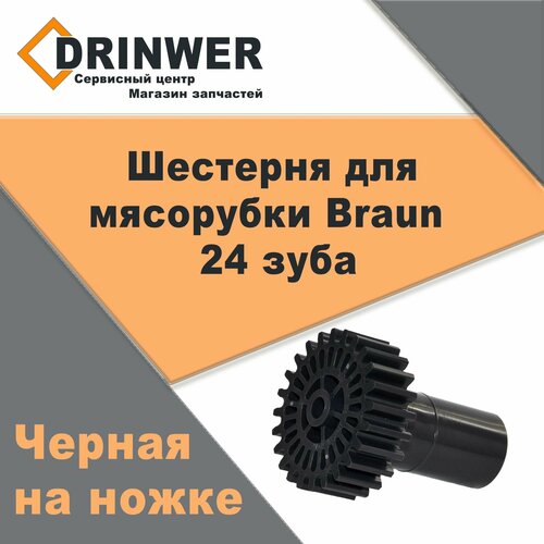 Шестерня для мясорубки Braun 24 зуба (Черная на ножке)