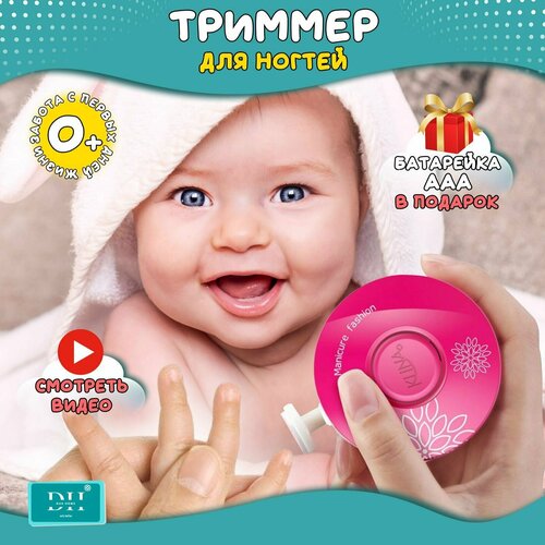 Ножницы пилка для новорожденных детские для ногтей светло-розовая с батарейкой