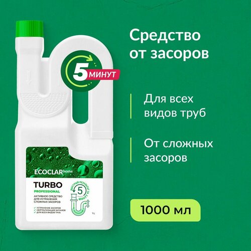 ECOCLARhome Активное средство для устранения сложных засоров, для прочистки труб Turbo Professional, 1 л