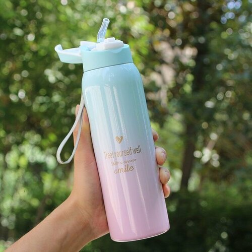 Термокружка-термос с трубочкой, 400мл, для чая, для кофе, для воды, сталь