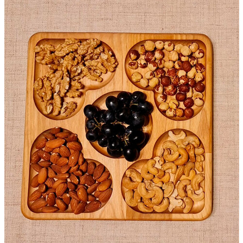 Менажница деревянная 5 секций тарелка для закусок разделочная доска из натурального дерева