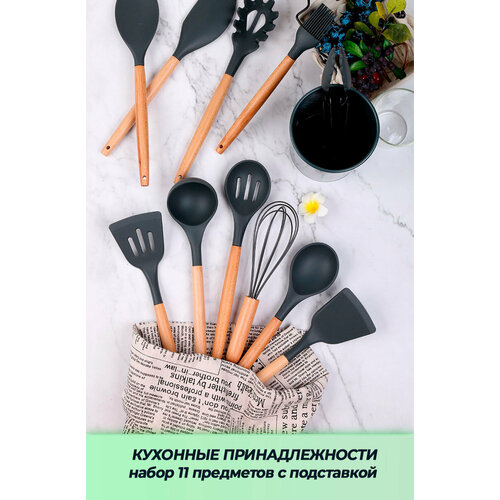 Набор кухонных принадлежностей, 12 предметов, силиконовая лопатка, шумовка, половник, щипцы для кухни