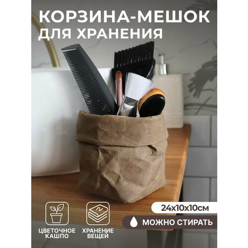 Корзина-мешок для хранения вещей, игрушек/цветочное кашпо, цвет тауп, размер 24*10*10 см.