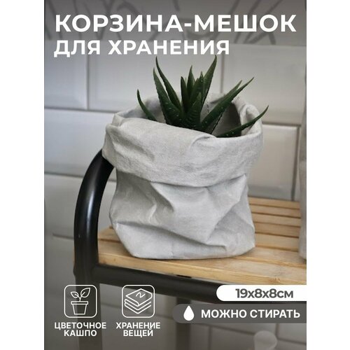 Корзина-мешок для хранения вещей, игрушек/цветочное кашпо, цвет серый, размер 24*10*10 см.