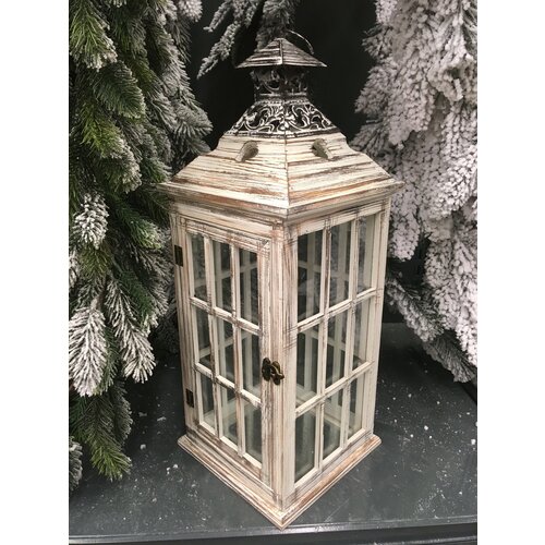 Фонарь-подсвечник "Винтаж L" , дерево H 51,5 см.* 20,5см *20,5 см