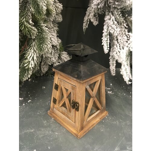 Фонарь-подсвечник "Винтаж" , дерево H 32см.* 14 см *14 см