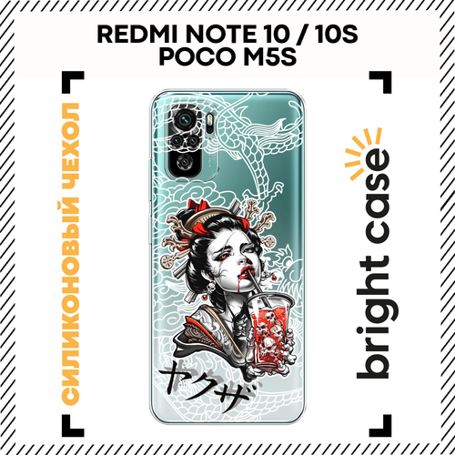 Чехол на Xiaomi Redmi Note 10/Note 10S/Poco M5s / Сяоми Редми Нот 10/Нот 10S/Поко M5s с принтом Гейша с напитком, прозрачный