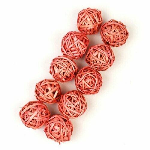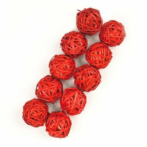 Шары из лозы красные 3.5 см, 10 шт. в упаковке, для декора