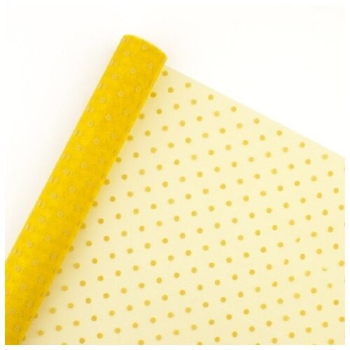 Органза с рисунком "Горох" желтая для упаковки цветов и подарков в рулоне 70см*10ярд