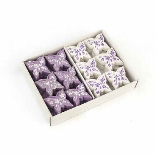 Бабочки декоративные на липучке фиолетовые и белые 2,5 см, 24 шт. в упаковке, для декора