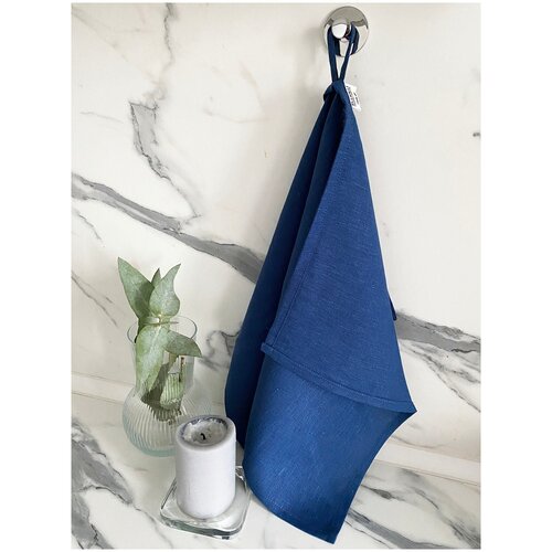 Полотенце льняное, синее, кухонное 40*60