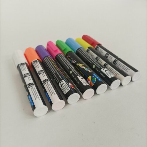 Флуоресцентные маркеры, 8 цветов, стержень 10 мм, 15 грамм