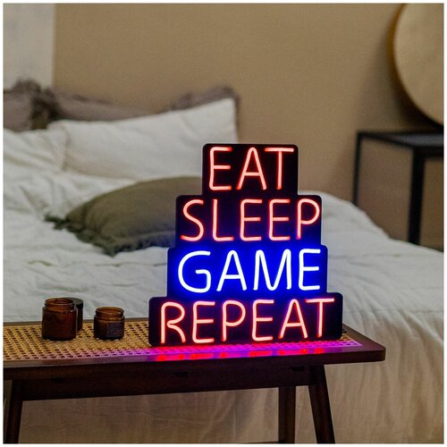 Табличка неоновая Eat, Sleep, Game, Repeat, 35х30 см