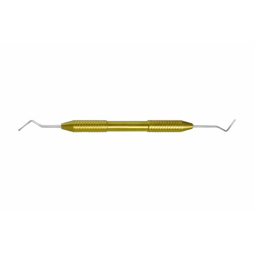 Штопфер двухсторонний (пуля и дугообразный) стоматологический (аналог LM Fissura) титановый ЭМИ диаметр 1,5 мм-0,4мм эргономичная ручка 8 мм золотая