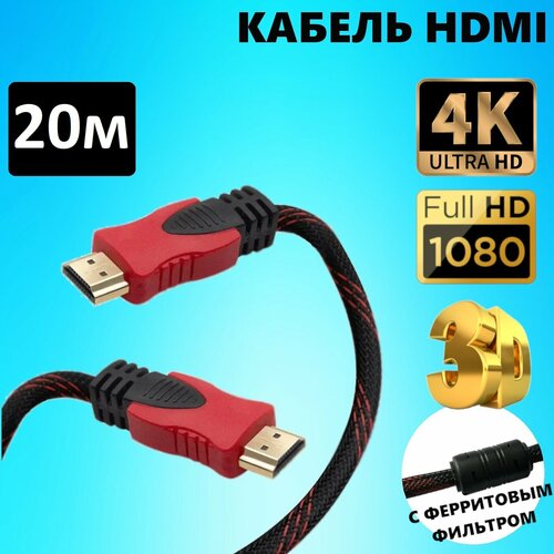 Кабель HDMI 20 метров в тканевой оболочке с ферритовыми фильтрами