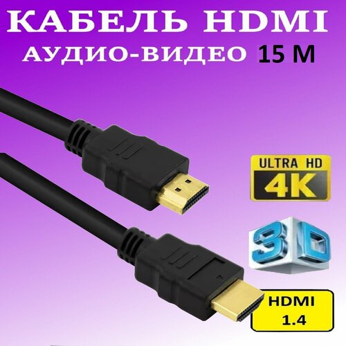 Кабель HDMI(HDMI 15м)-с экранированием, медным проводником и позолоченными коннекторами 15 метров