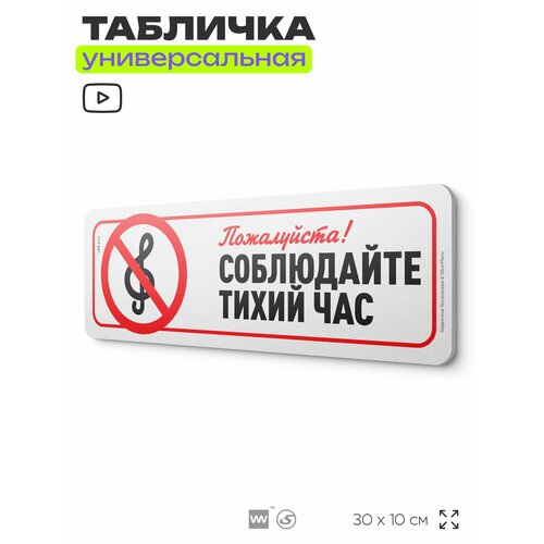 Табличка "Соблюдайте тихий час", на дверь и стену, для подъезда, информационная, пластиковая с двусторонним скотчем, 30х10 см, Айдентика Технолоджи