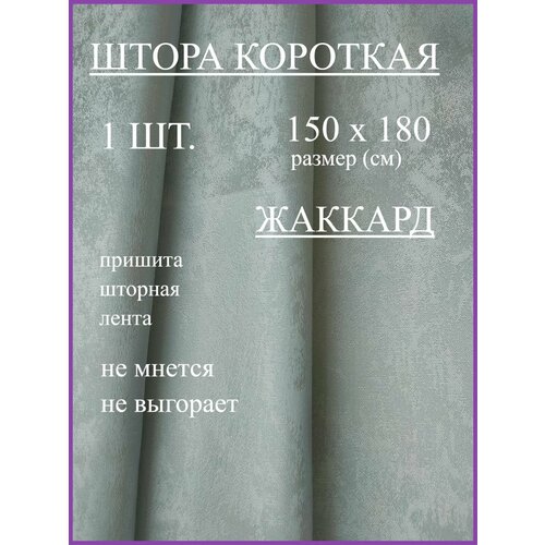 Шторы короткие жаккард 150*180 СМ на кухню мрамор серо-голубой