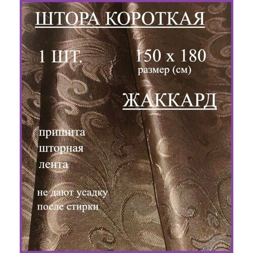 Шторы короткие жаккард 150*180 СМ на кухню мрамор шоколад