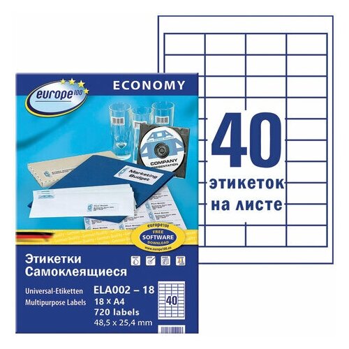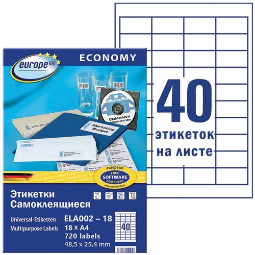 Этикетки самоклеящиеся универсальные EUROPE 100 Этикетка самоклеящаяся 48,5х25,4 мм, 40 этикеток, белая, 70 г/м2, 18 л, Avery, Европа-100, ELA002-18