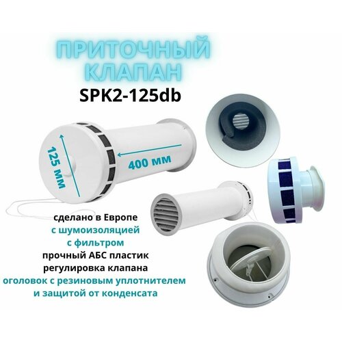 Из Европы приточный клапан, 125мм, с шумоизоляцией, фильтром, клапаном расхода воздуха SPK2-125db Europlast