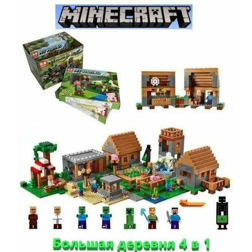 Конструктор Майнкрафт "Деревня 4 в 1", 806 деталей