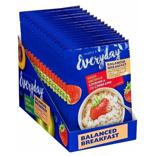 Каша Everyday овсяная Balanced Breakfast Клубника со сливками, 15штx40г/уп