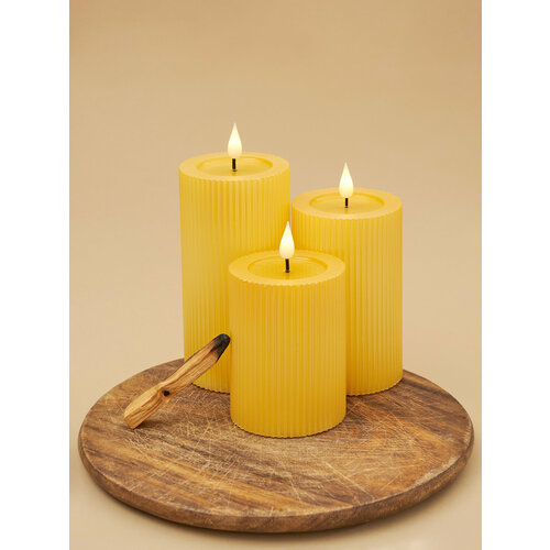Мерцающие светодиодные свечи на батарейках - 3 штуки, золотые