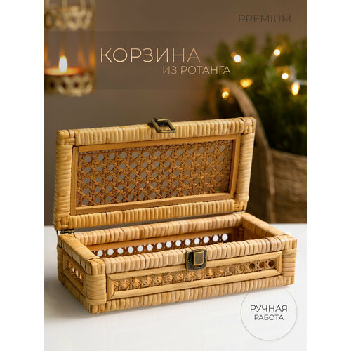 Корзина плетеная для хранения косметики с крышкой/маленькая, декоративная