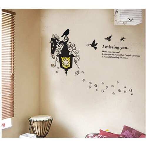 Интерьерные наклейки "Светящийся фонарь" силуэт фонаря и птицы размер на стене 110 см на 120 см.