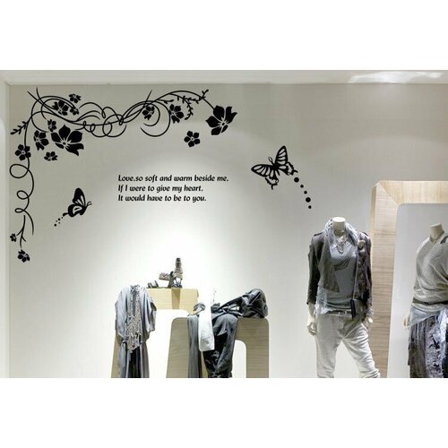 Интерьерная декоративная наклейка "Чёрный визаж" ветка с цветами размер на стене 70 на 120 см.