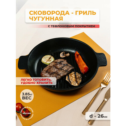 Сковорода-гриль чугунная с тефлоновым покрытием d260мм