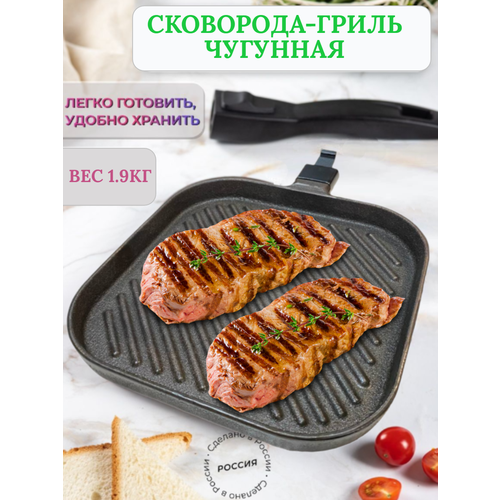 Сковорода-гриль чугунная 21х21см со съемной ручкой