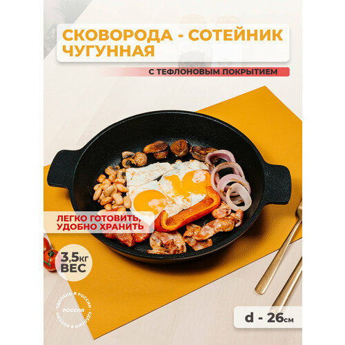 Сковорода-сотейник чугунная с тефлоновым покрытием d260мм